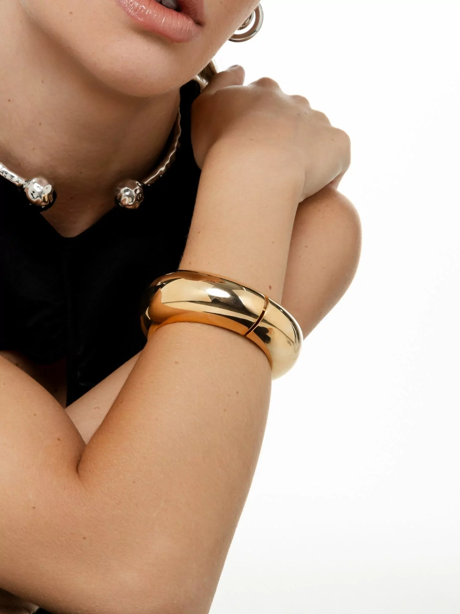 Bracelete articulado banhada a ouro 18 K, finalizado com verniz cataforético, que confere mais durabilidade e brilho a jóia! Banho antialérgico, níquel free. Obs.