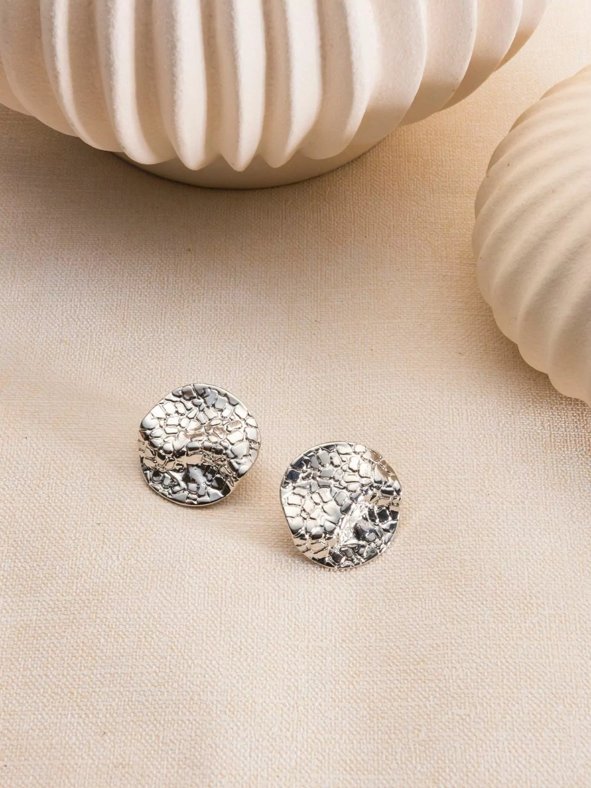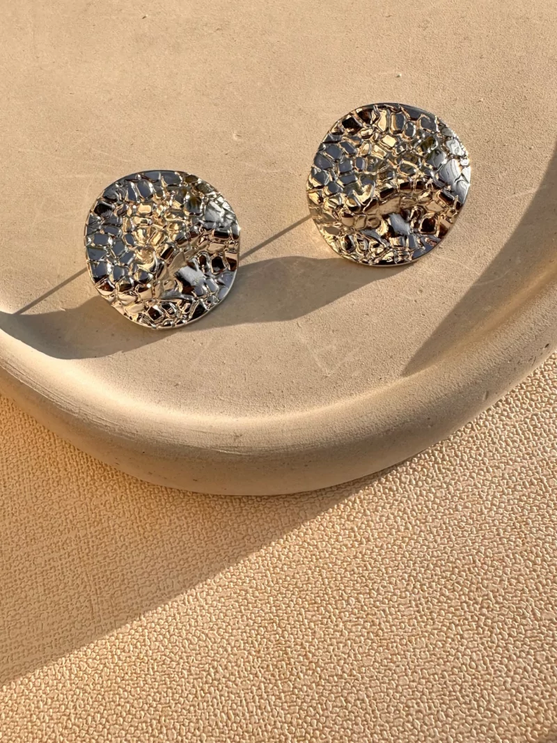 Brinco em ródio hipoalergênicos com textura e 2,5cm de diâmetro sem níquel na composição