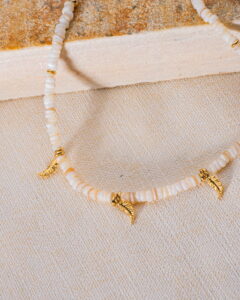colar em madrepérola com detalhes folhinha banho ouro 18k