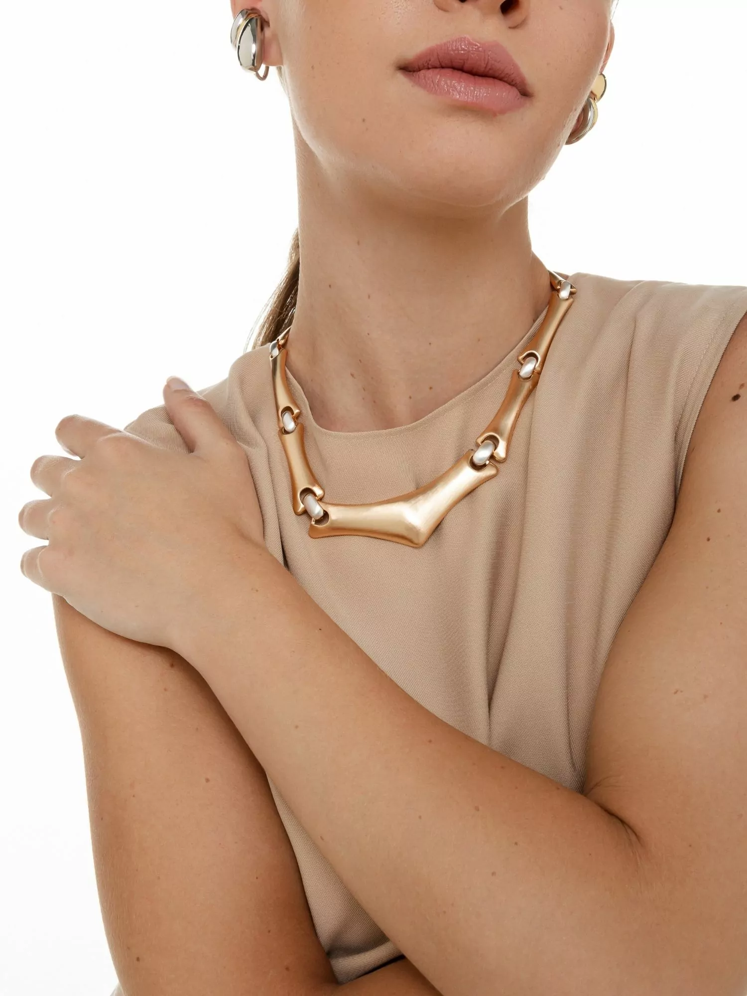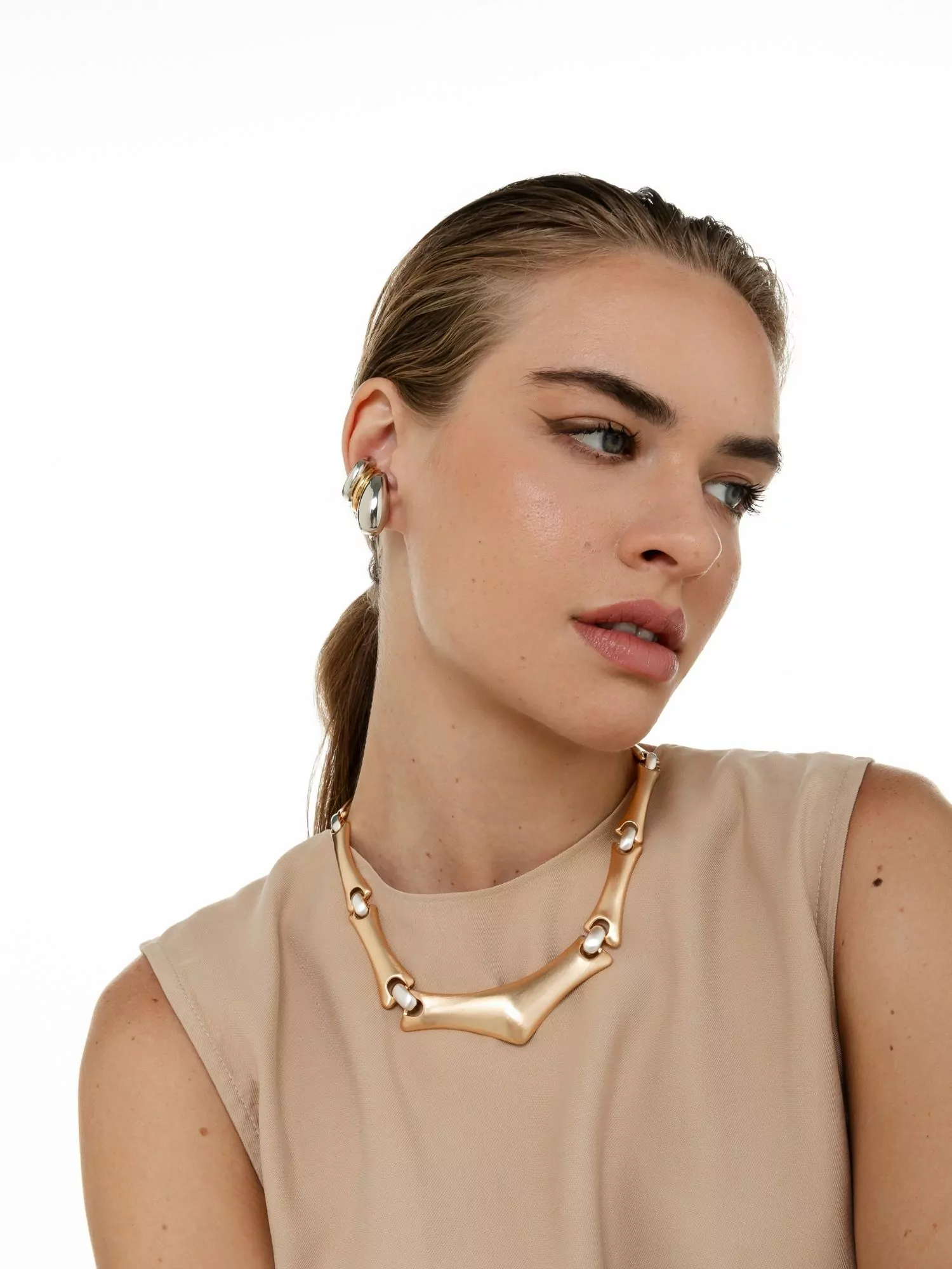 Colar em banho ouro 18 e prata com um acabamento acetinados o que traz sofisticação e atualiza a peça