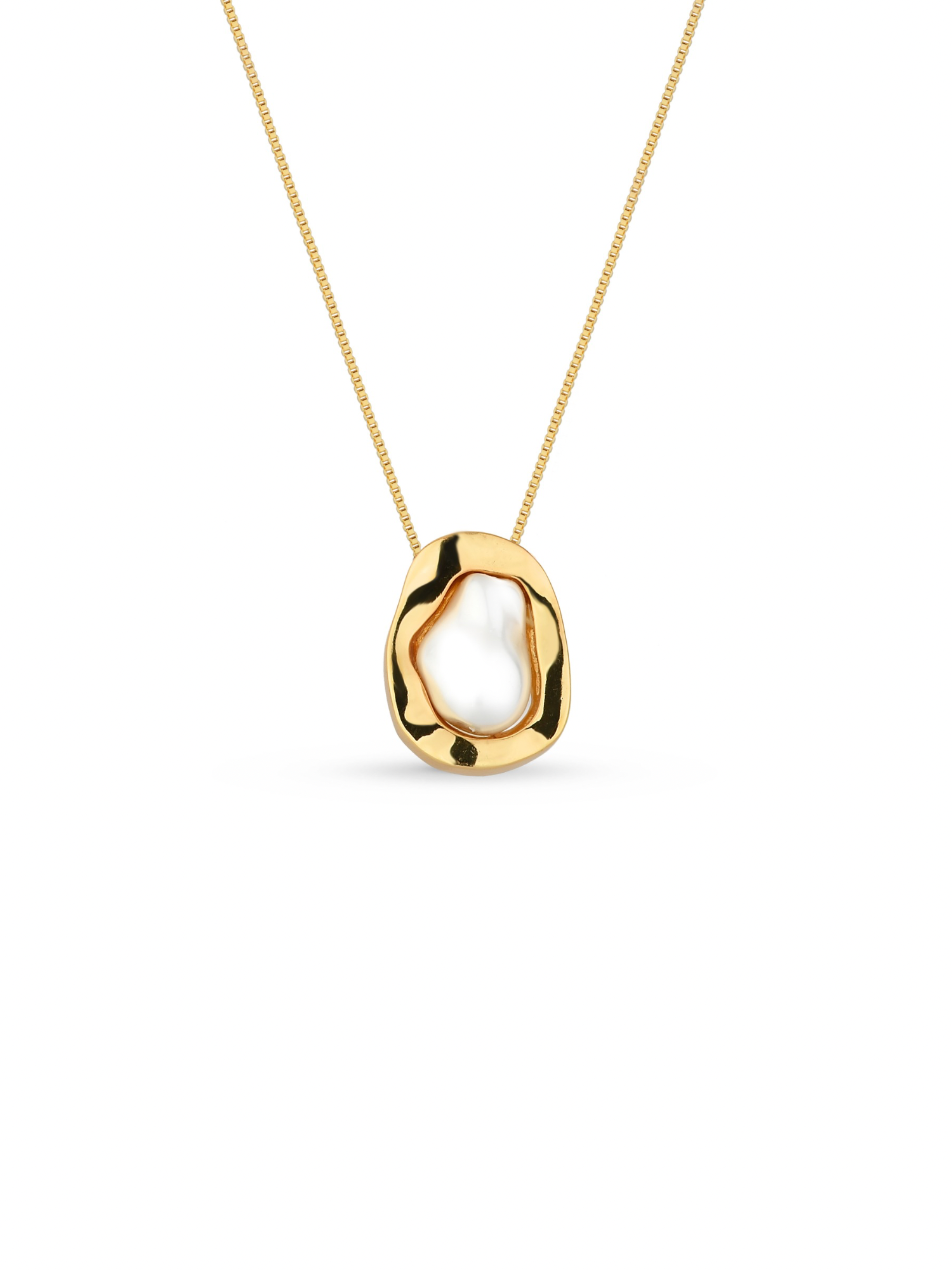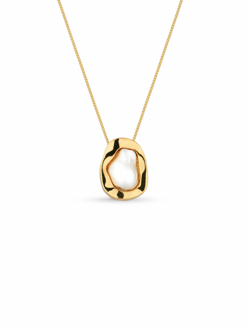 Colar corrente com pingente orgânico com pérola.