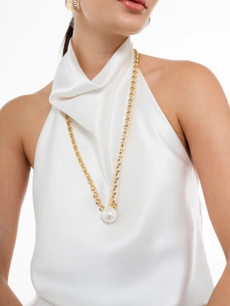 Colar corrente com pérola.