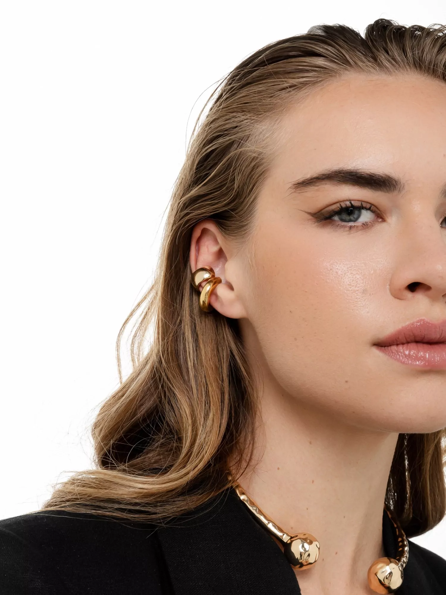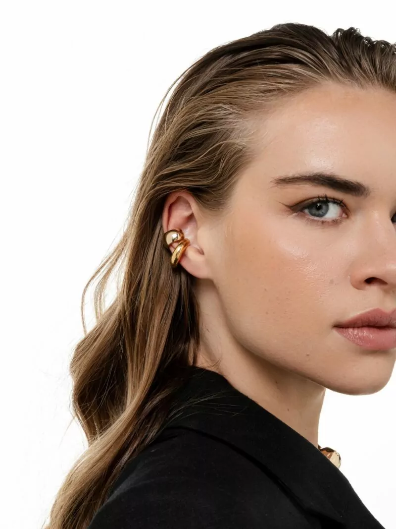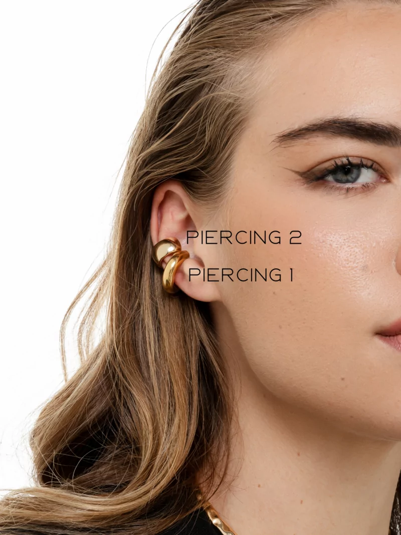 Piercing largo com encaixe anatômico em banho ouro 18k. Contém verniz cataforético que confere mais brilho e durabilidade a jóia. Banho antialérgico, níquel free. (Piercing de cima da foto, mais gordinho, número 2)
