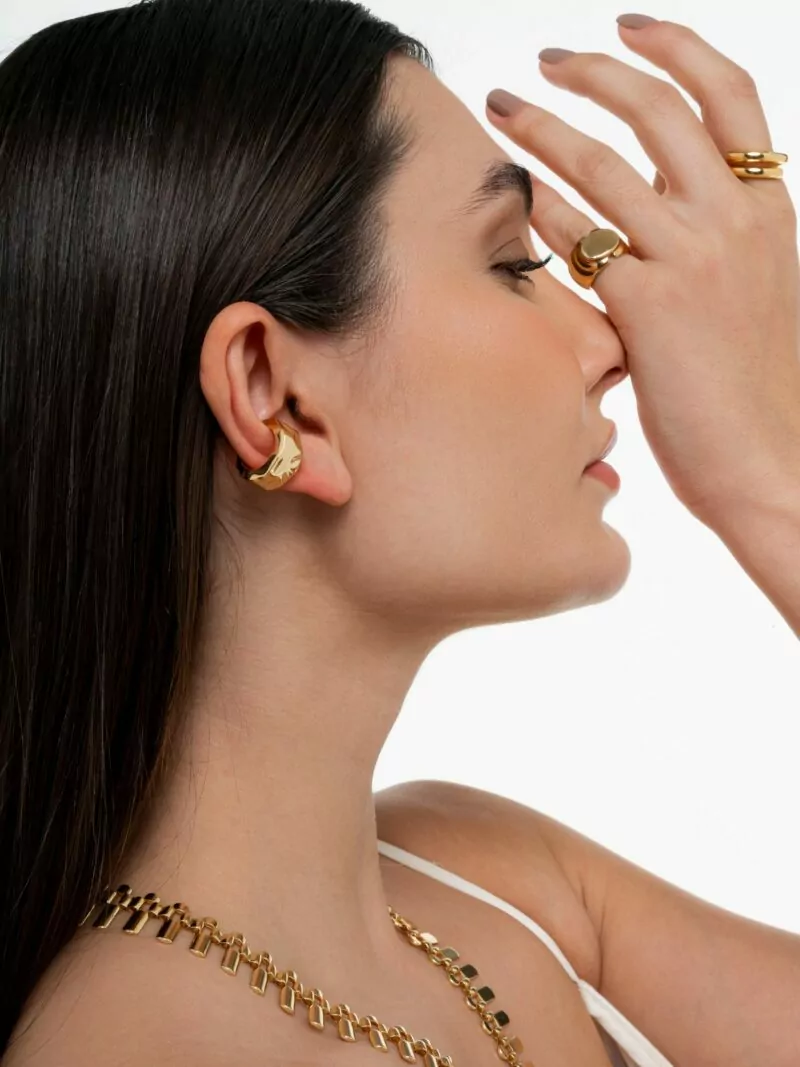 Piercing fake banhado a ouro 18 K com acabamento em verniz cataforético, que confere mais brilho e durabilidade a sua jóia! Banho antialérgico, níquel free.